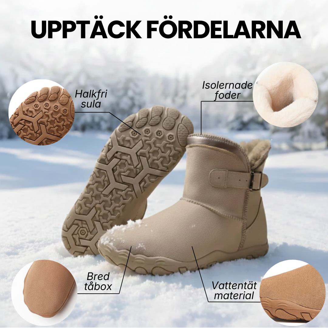 Skyddar fötterna mot vinterväder utan att offra den naturliga känslan.